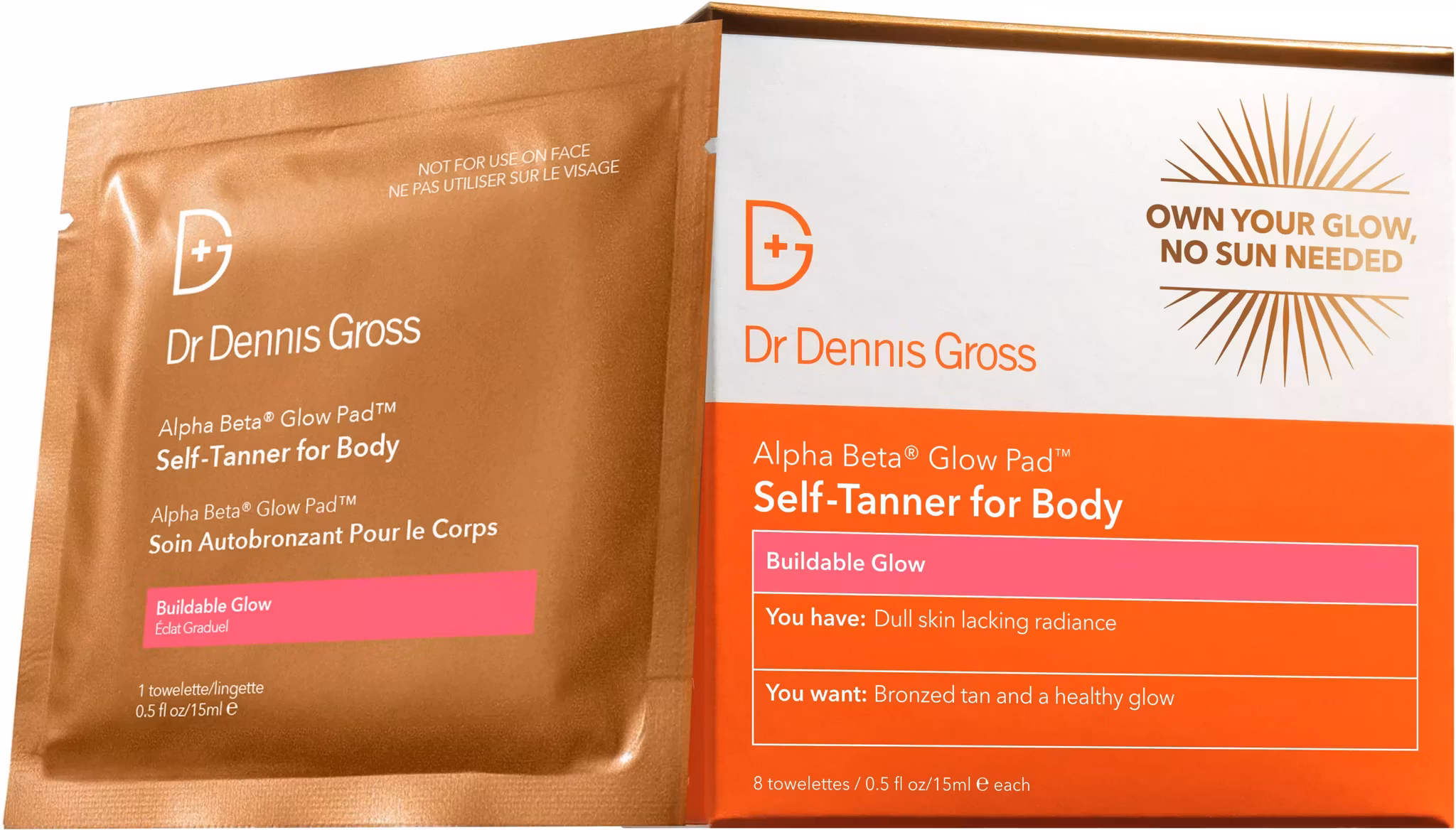 En praktisk brun-uten-sol-serviett fra Dr Dennis Gross for kropp med en lett eksfolierende effekt.