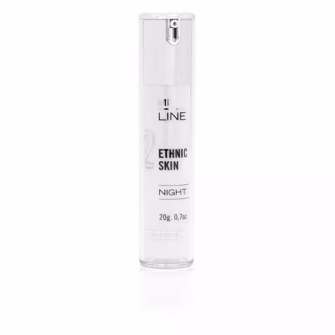 ME Line Ethnic Skin Night er en svært aktiv, depigmenterende nattkrem utviklet for hudfototyper IV-VI (mørkere hudtyper). Den er formulert for å behandle og forebygge synligheten av pigmentering, inkludert melasma, chloasma og annen hyperpigmentering. Inneholder en rekke aktive ingredienser som sammen effektivt reduserer syntesen av mRNA som er nødvendig for produksjon av tyrosinase. Dette resulterer i redusert melaninproduksjon. Ethnic Skin Night blokkerer også frigjøring av melanosomer, og bidrar til å klarne og homogenisere pigmenteringen i huden.